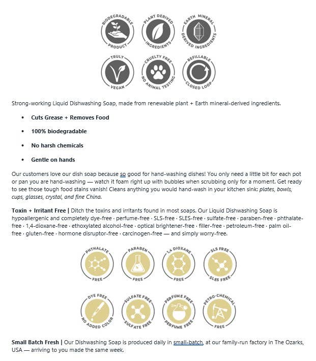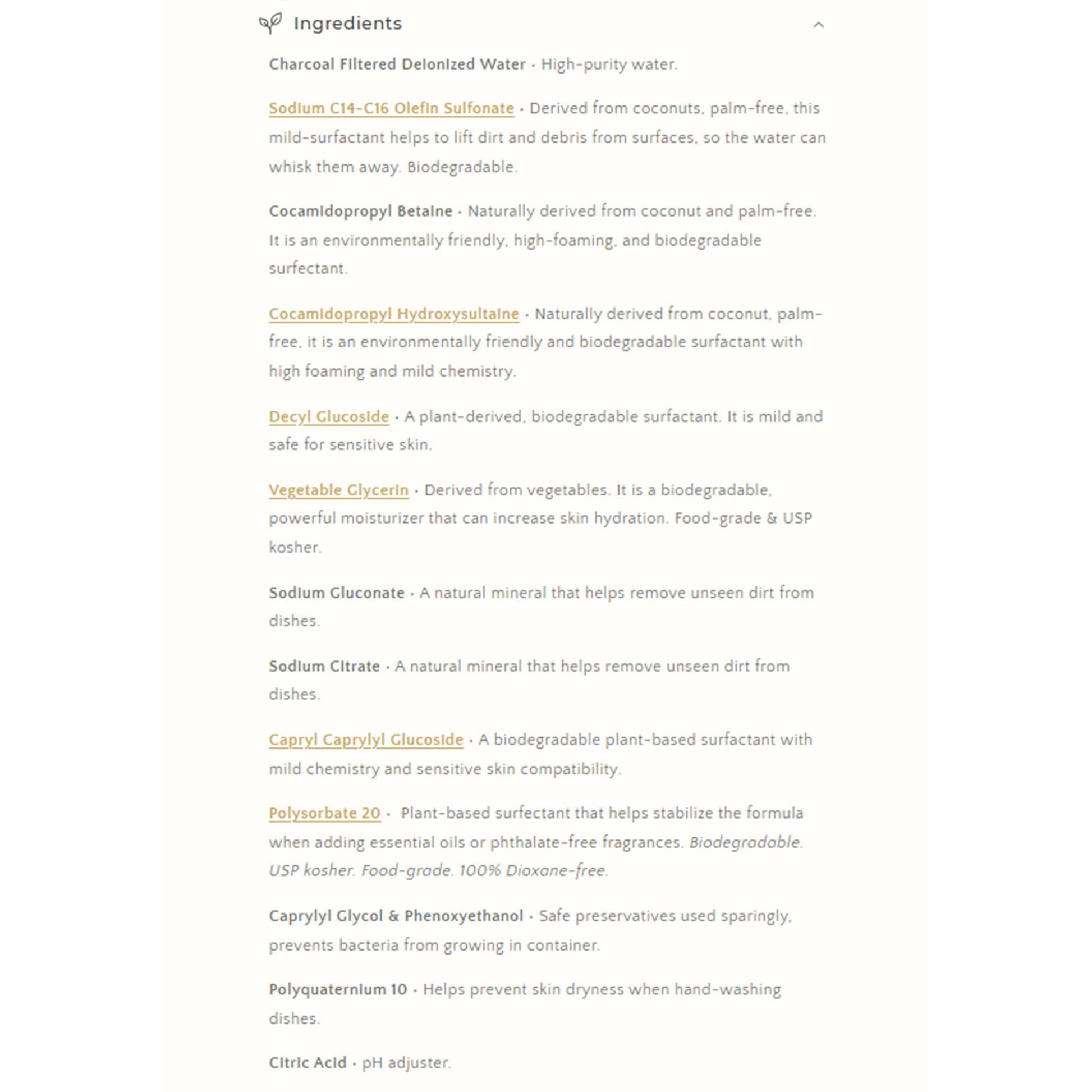 Our dish soap is strong foaming and easy to work with - you only need a little bit on each dish. Cleans anything you need to hand-wash, including crystalware and delicate ceramics.