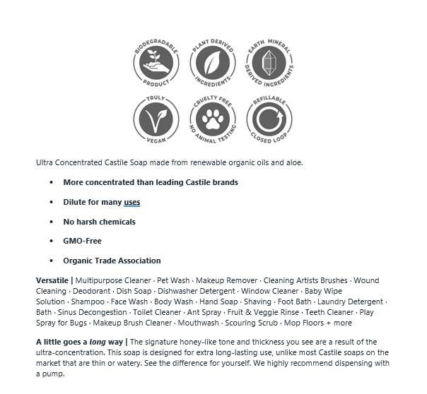 Organic Castile Soap - Concentrated