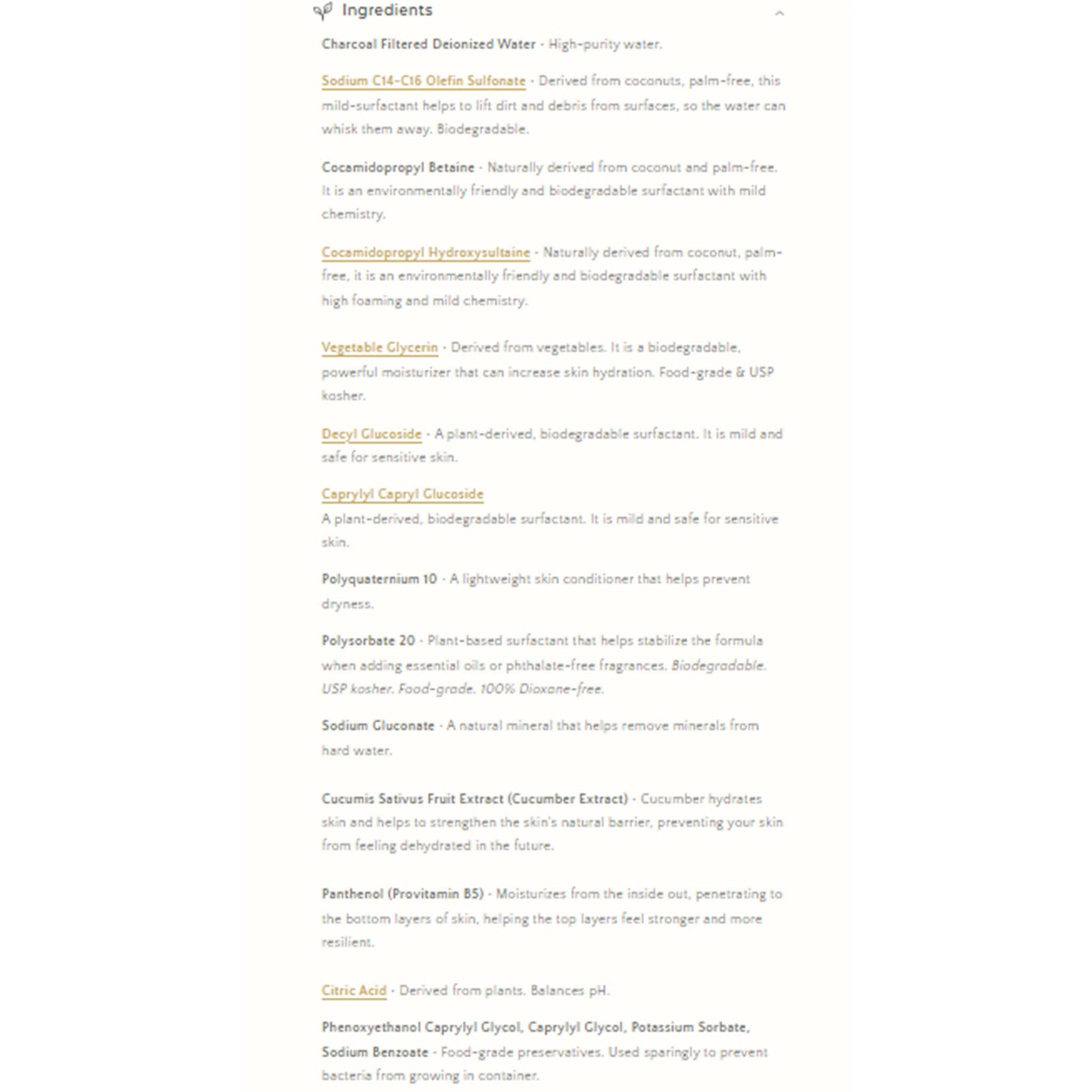 Cucumber extract quenches the skin, instantly hydrating and helping to strengthen the skin's natural barrier, preventing your skin from feeling dehydrated in the future. Vitamin B5 works from the inside out, penetrating to the bottom layers of skin, helping the top layers feel stronger and more resilient.